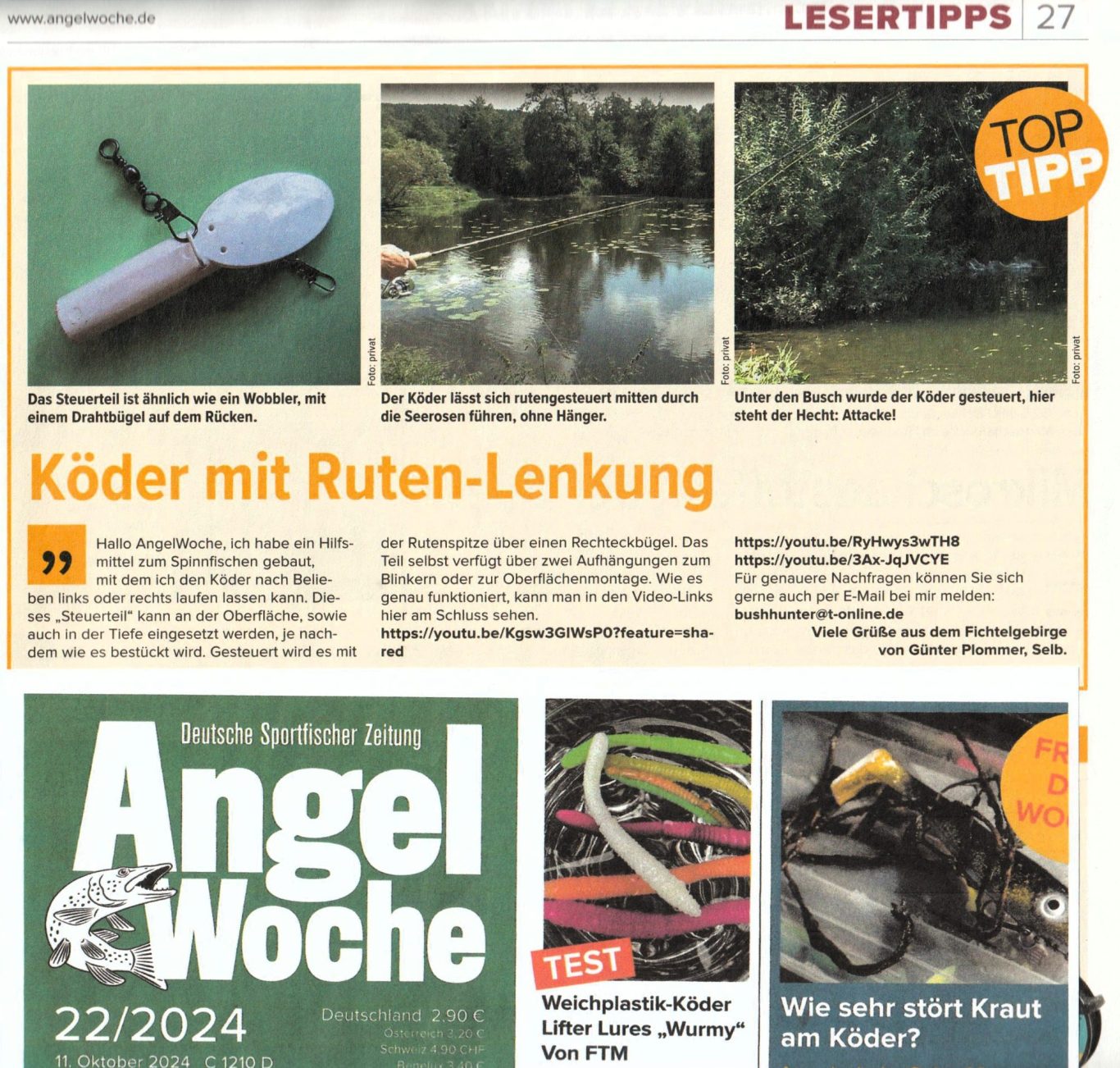 Unser Steuerteil "Investigator", vorgestellt in Rute&Rolle 12/2025 sowie der Angelwoche 22/2024, ist für hindernisreiche Gewässer bestens geeignet!