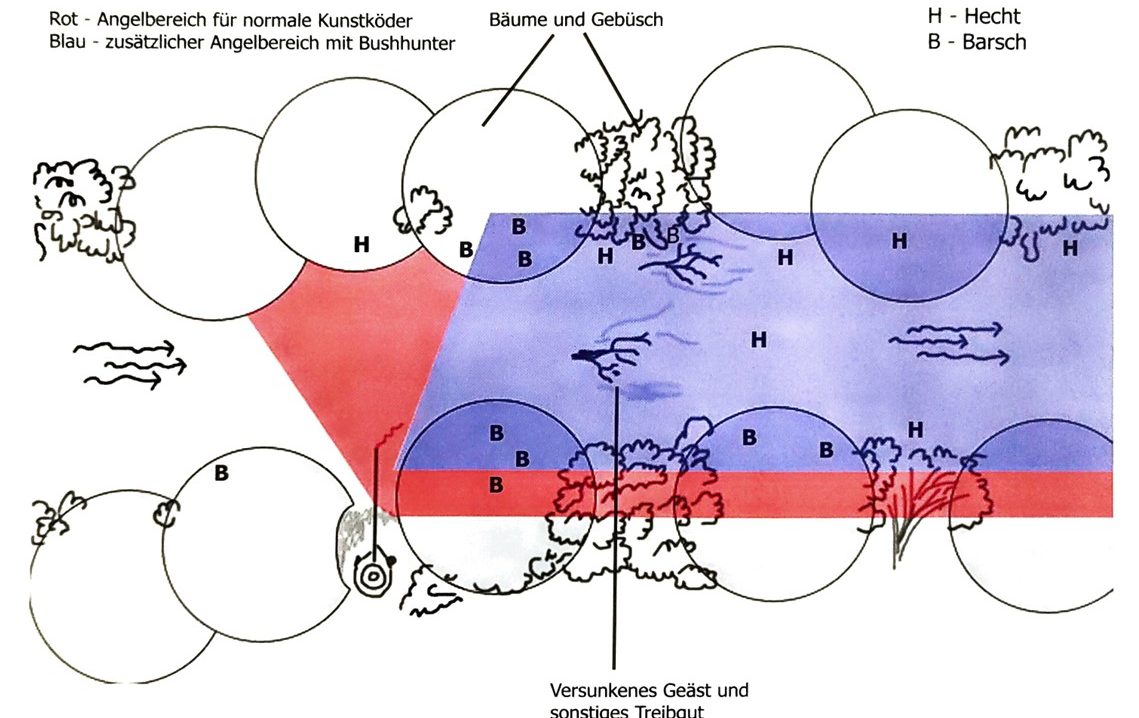 Ob Sie auf Forellen, Äschen oder Döbel gehen, die auf vom Blätterdach herabfallende Beute lauern oder Hechten nachstellen, die in diesen geschützten Zonen jagen - mit Kunstködern von Bushhunter können Sie diese Stellen mühelos erreichen.